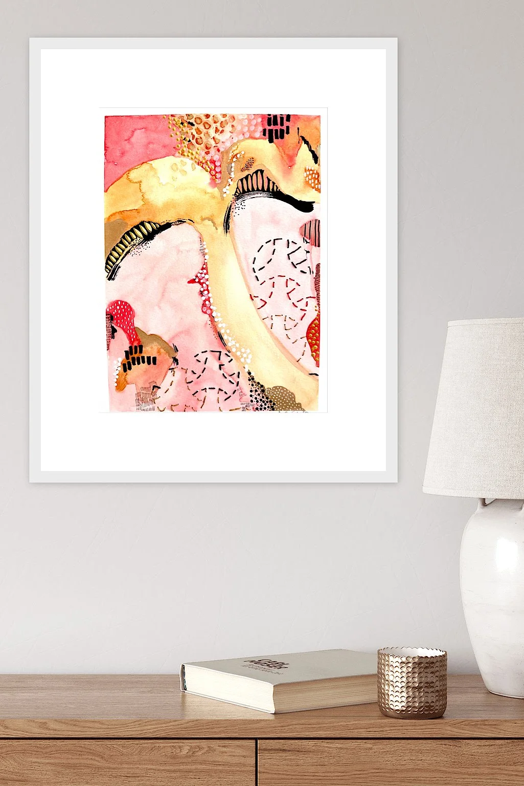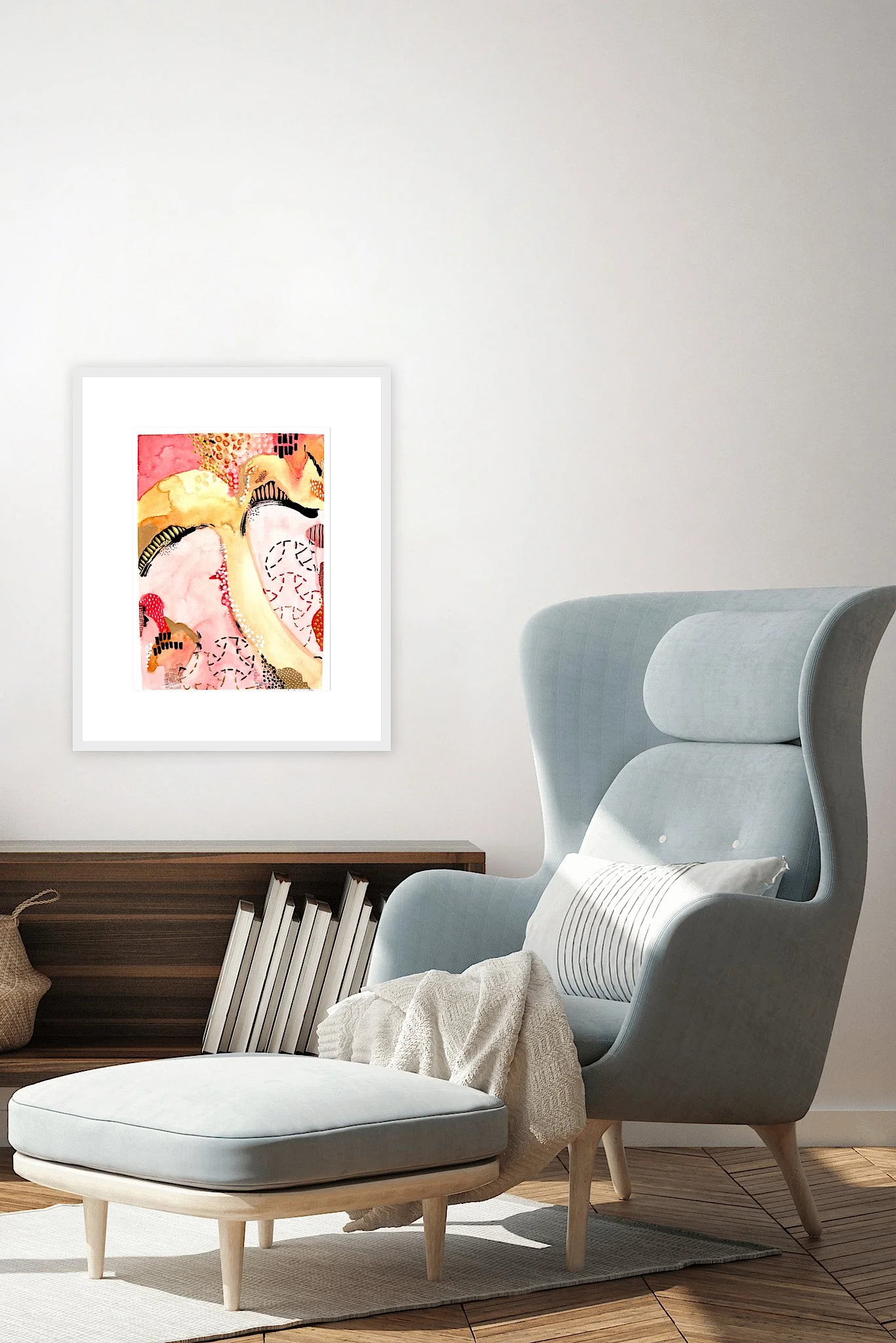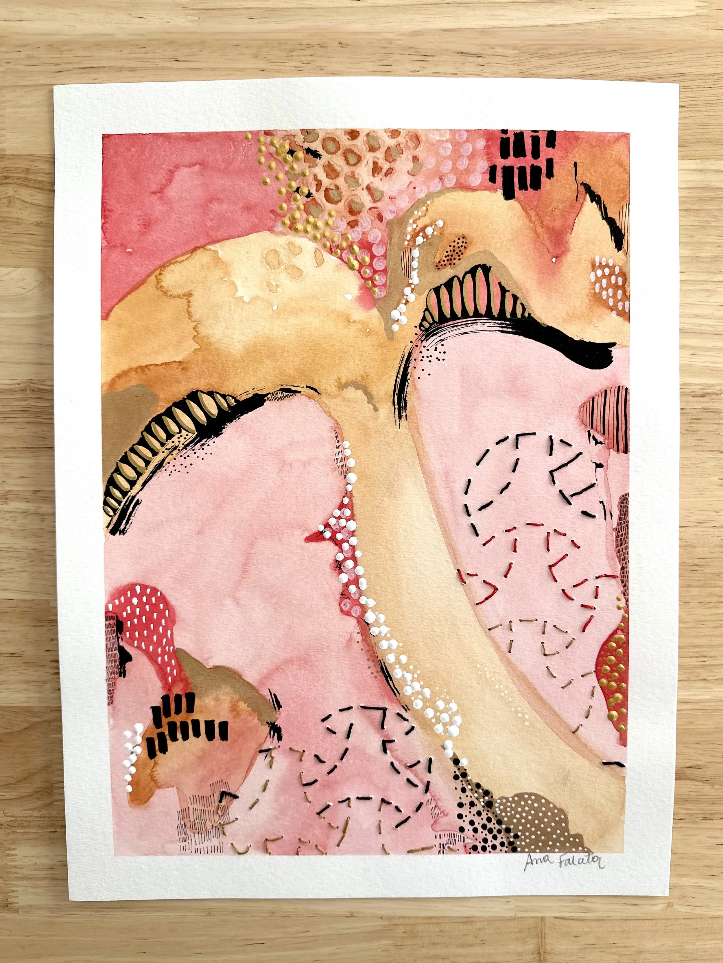 The painting is supported with a foamcore and placed inside a transparent sleeve. It is then sandwiched between two boards for added protection before being placed inside an envelope.
